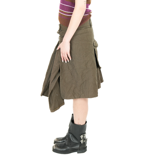 1990s Modern Kilts Pleated Brown Corduroy Midi Skirt