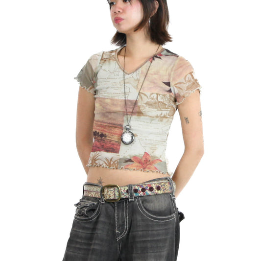 Ruffled Map Mesh Shirt
