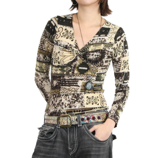 Tribal Brown Graphic Top