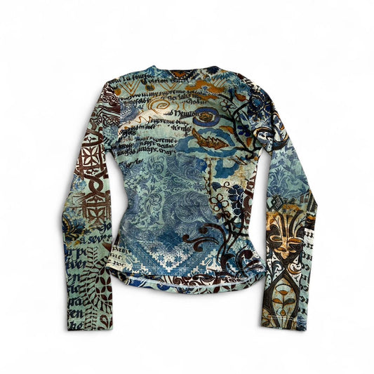 Euro Printed Y2K Long Sleeve Mesh Top