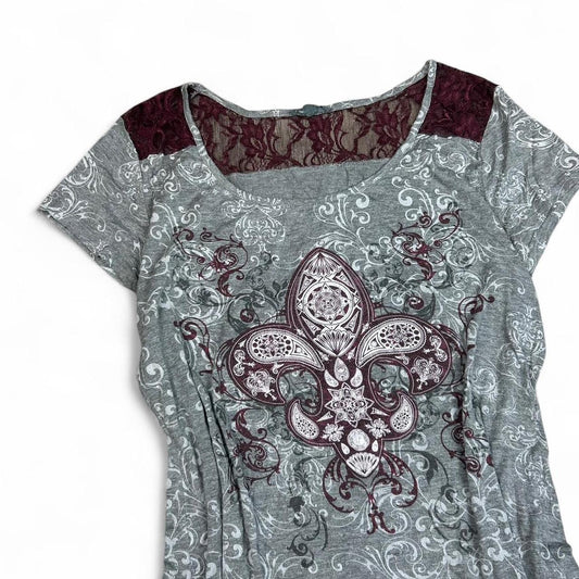 McBling Fleur de Lis Grunge Lace Y2k Top