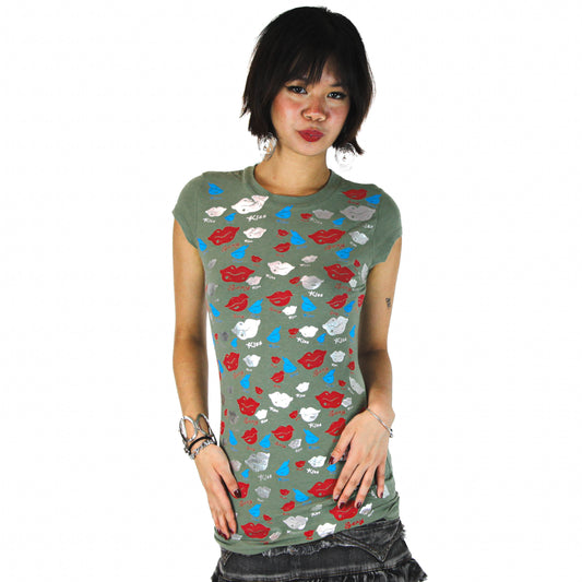 Deadstock Army Green Metallic Kiss Baby Tee