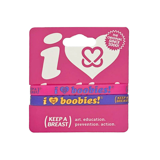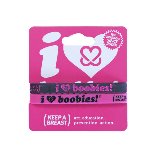 I LOVE BOOBIES! MINI FUSCHIA BLACK BRACELET PACK