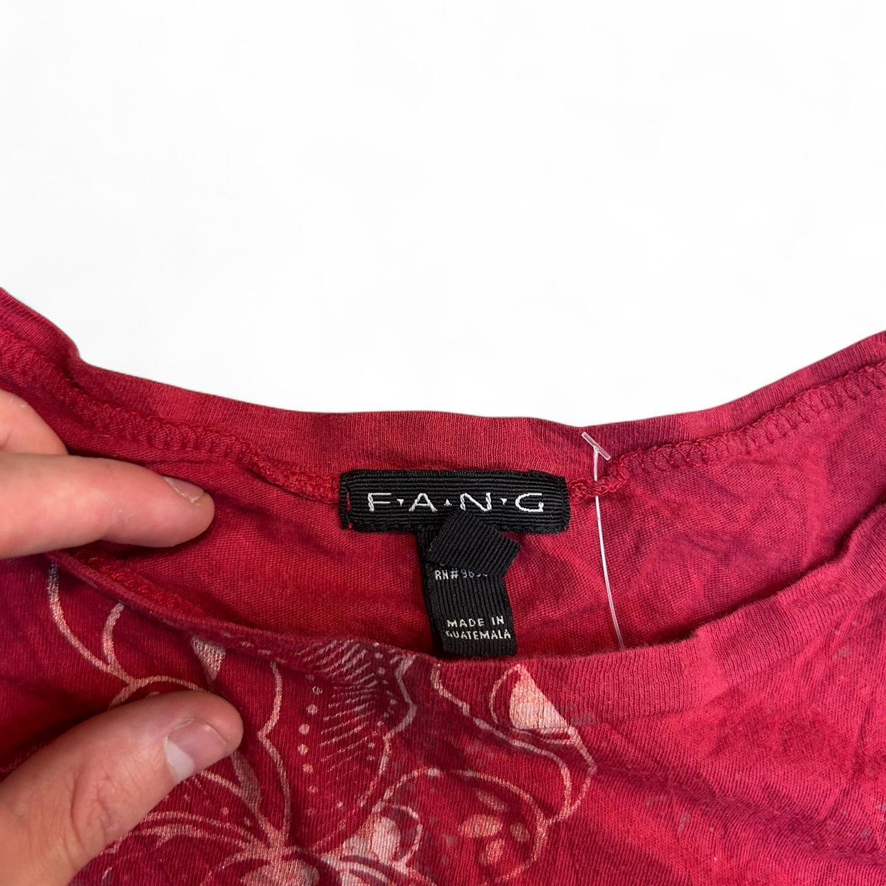 Vintage / Early 2000’s FANG Burgendy Red Butterfly Whimiscal Y2K Cursive Baby Tee Slim Fit Women’s T Shirt Top