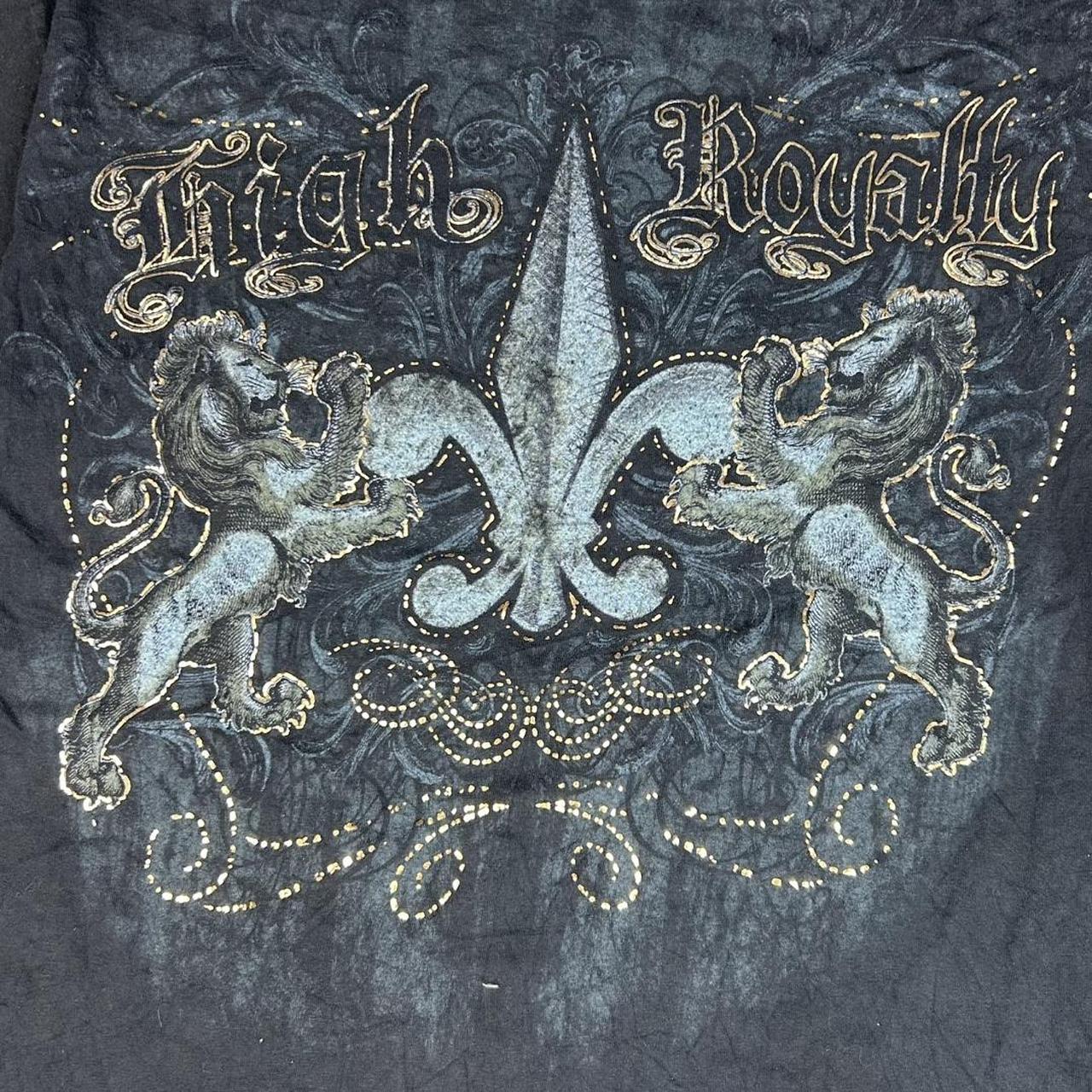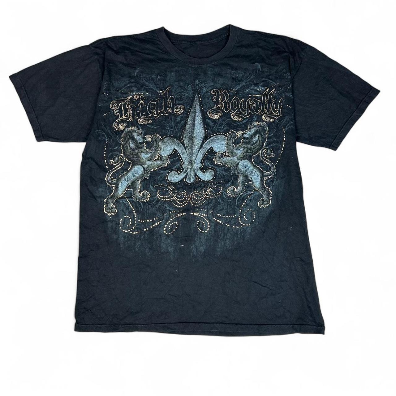 2000s Navy Blue and Gold Genuine Tee “high Royalty” Fleur De Lis Lion Y2K Graphic Tee Shirt Top
